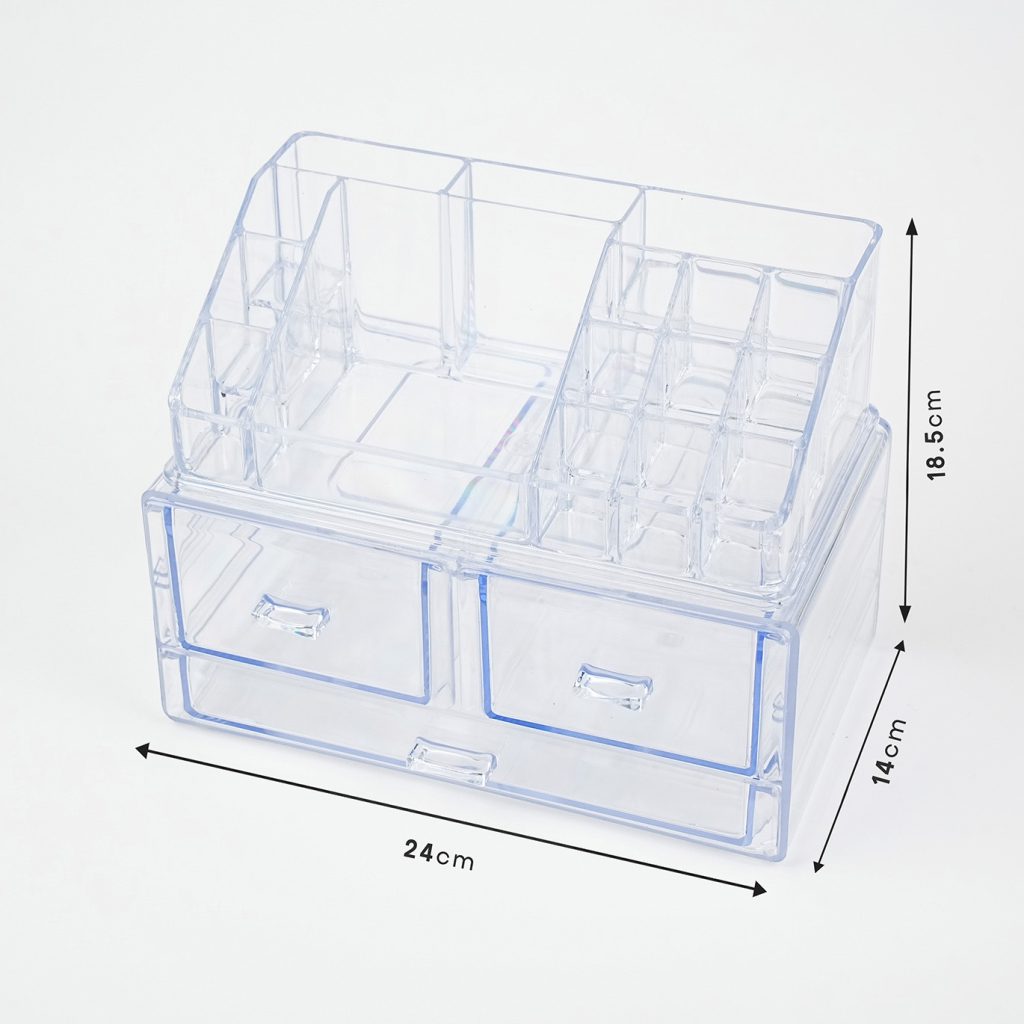طراحی جمعوجور و مدرن این استند کمک میکند میز آرایش شما همیشه مرتب، منظم و زیبا به نظر برسد. این مدل گزینهای عالی برای کسانی است که به نظم و دسترسی آسان به لوازم آرایشی اهمیت میدهند.